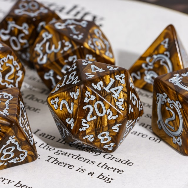 Kauliukai yra pagaminti iš aukso spalvos blizgaus akrilo, bei papuošti aukso spalvos skaičiais, drakonas, bei įvairiais raštais. Tai jiems suteikia išskirtinį ir stilingą įvaizdį, dėl to kauliukai puikiai atrodo juos ridenant žaidimo metu.