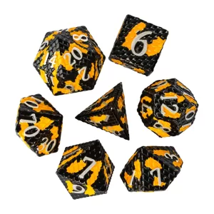 Kauliukai yra pagaminti iš metalo lydinio, lieti taip, jog atrodo, kad yra pagaminti iš juodojo drakono odos. Šis rinkinys yra idealus pasirinkimas žaidėjams, kurie vertina stilingą dizainą ir ilgaamžiškumą.