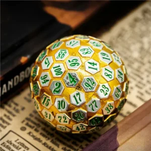The dice are made of a metal alloy, made to look like golden metallic ball dice. The simplicity of the colour of the dice gives them a luxurious and at the same time distinctive look. All dice are decorated with draconian numbers! This set is the ideal choice for players who appreciate stylish design and durability.