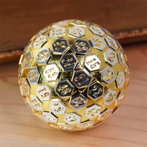 The dice are made of a metal alloy, made to look like golden metallic ball dice. The simplicity of the colour of the dice gives them a luxurious and at the same time distinctive look. All dice are decorated with draconian numbers! This set is the ideal choice for players who appreciate stylish design and durability.