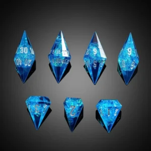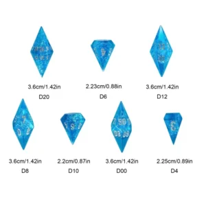 Tai yra 7 vienetų kauliukų deimantu formos rinkinys, skirtas tokiems RPG žaidimams, kaip D&D (Dungeons and Dragons), Pathfinder, Cyberpunk 2077 ir kt.