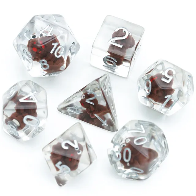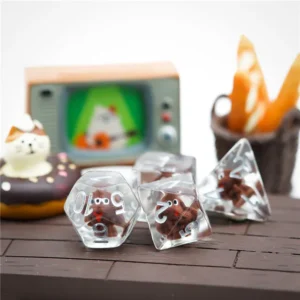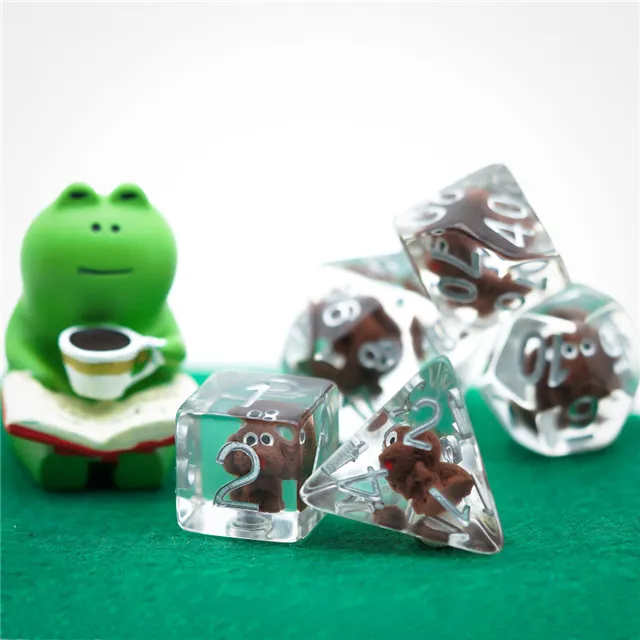 Kauliukai yra pagaminti iš permatomo resino, o kiekvieno iš jų viduje yra rudas šuniukas su kurio jūsų kauliukai, žaidimo metu, tikrai išsiskirs iš visų! Tegul kiekvienas ridenimas tampa dar įdomesnis!