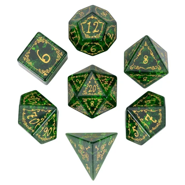Šis rinkinys susideda iš septynių kauliukų, kurie yra sužymėti skirtingomis numeracijomis: 1-D4, 1-D6, 1-D8, 1-D10, 1-D12, 1-D20 ir 1-D100.