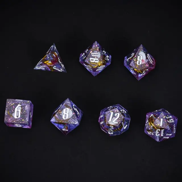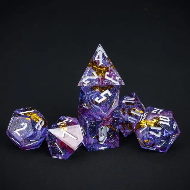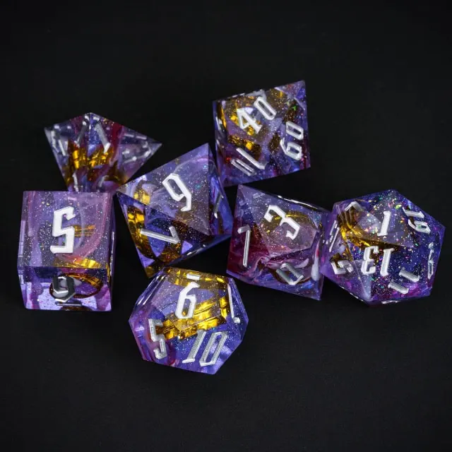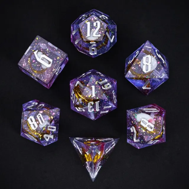 Tai yra 7 vienetų kauliukų rinkinys, skirtas tokiems RPG žaidimams, kaip D&D (Dungeons and Dragons), Pathfinder, Cyberpunk 2077, Call of Cthulhu ir kt.