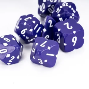 Šis rinkinys susideda iš septynių kauliukų, kurie yra sužymėti skirtingomis numeracijomis: 1-D4, 1-D6, 1-D8, 1-D10, 1-D12, 1-D20 ir 1-D100.