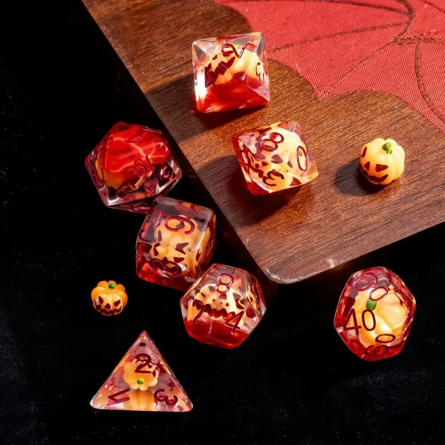 Kauliukai yra pagaminti iš permatomo resino, o kiekvieno iš jų viduje yra moliugas su kurio jūsų kauliukai, žaidimo metu, tikrai išsiskirs iš visų! Tegul kiekvienas ridenimas tampa dar įdomesnis!