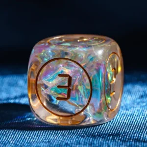 Kauliukai yra pagaminti iš permatomo resino, o kiekvieno iš jų viduje yra žalio saldainio mišinis, tad Jūsų kauliukai, žaidimo metu, tikrai išsiskirs iš likusiųjų!