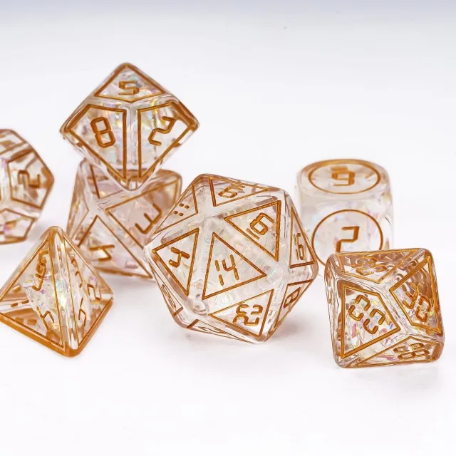 Šis rinkinys susideda iš septynių kauliukų, kurie yra sužymėti skirtingomis numeracijomis: 1-D4, 1-D6, 1-D8, 1-D10, 1-D12, 1-D20 ir 1-D100.