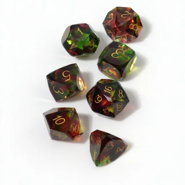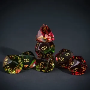 Tai yra 7 vienetų kauliukų rinkinys, skirtas tokiems RPG žaidimams, kaip D&D (Dungeons and Dragons), Pathfinder, Cyberpunk 2077, Call of Cthulhu ir kt.