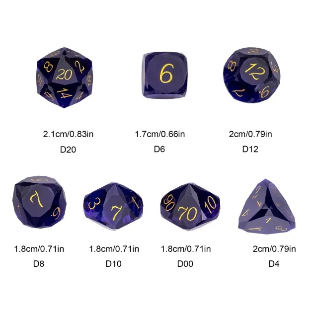 Šis rinkinys susideda iš septynių kauliukų, kurie yra sužymėti skirtingomis numeracijomis: 1-D4, 1-D6, 1-D8, 1-D10, 1-D12, 1-D20 ir 1-D100.